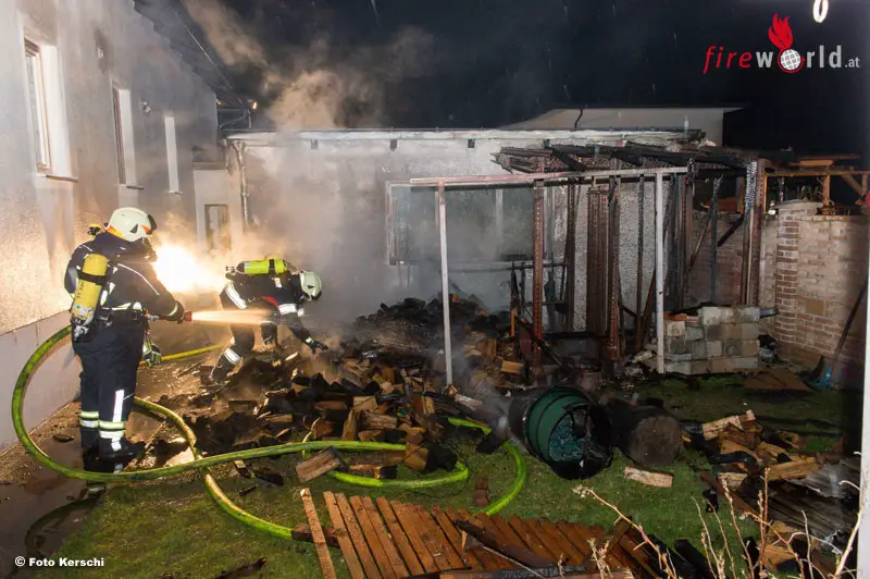 ENNSDORF (NÖ): Niedergebrannt ist in der Nacht auf Montag, 30. März 2015, ein Holzanbau bei einem Einfamilienhaus in Ennsdorf.