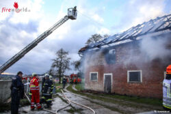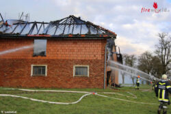 Oö: Alarmstufe III: Wirtschaftstrakt eines Bauernhofes nach Blitzschlag in Vollbrand