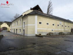 FELDKIRCHEN AN DER DONAU (OÖ): Die FF Landshaag wurden um halb 2 des 31. März 2015 zu Absicherungsarbeiten eines Dachstuhls bei der landwirtschaftlichen Schule in Bergheim gerufen. Eine Giebelmauer brach aufgrund des Winddrucks heraus.