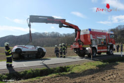 Die Lenkerin eines Pkw kam auf der L621 seitlich von der Straße ab und in Schräglage in einem Straßengraben zum Liegen. Die leicht verletzte Frau konnte sich aus eigener Kraft aus ihrem Fahrzeug befreien und wurde vom Roten Kreuz abtransportiert. Die Bergung des manövrierunfähigen Fahrzeugs erfolgte unter Zuhilfenahme des SRF-Krans. Nachdem es auf der Straße abgestellt wurde, schoben die Einsatzkräfte -unter Mitwirkung der Rangierroller- das Auto auf eine nahe gelegene Seitenstraße, um einen sicheren Verkehrsfluss zu gewähren. Die Fahrbahn und der Straßengraben wurden durch die Einsatzkräfte gereinigt.