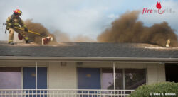 FORT WORTH (USA, TEXAS): 24 Feuerwehrfahrzeuge, es wurde der dritte Alarm ausgelöst, standen am Montag, dem 30. März 2015, beim Brand eines Motels in Fort Worth im Einsatz. Die Besatzung des ersten Fahrzeuges der Feuerwehr erreichte um 14.22 Uhr die Einsatzstelle am South Freeway.