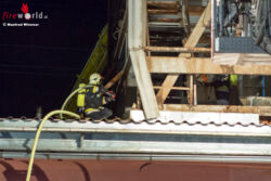 Da das Stiegenhaus selbst in Flammen stand, wurde ein Weg über das Dach ins Obergeschoss geschaffen. Sturmtief Niklas erschwerte die Löscharbeiten und sorgte für starken Funkenflug. Während zwei Atemschutztrupps mit den Löscharbeiten beschäftigt waren, wurde durch einen weiteren Trupp das Nebengebäude kontrolliert.