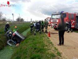 GOLS (BGLD): Am 1. April 2015 stürzte in Gols ein Pkw aus bislang unbekannter Ursache in einen angrenzenden Kanal neben der Straße, woraufhin das Fahrzeug auf dem Dach im Kanal liegen blieb.