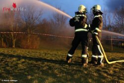 Angenommen wurde ein Flurbrand am Freizeitgelände Südstadt, welcher durch einen umfassenden Löschangriff bekämpft werden musste. Als Gegenstück zum viel trainierten Innenangriff, konnten wieder einmal die erforderlichen Maßnahmen im Außenangriff geprobt werden. Zur Wasserentnahme diente das Hydrantennetz im dicht besiedelten Wohngebiet. Die Zubringleitung führte über zwei Tanklöschfahrzeuge, bis hin zur Angriffsleitung, wo im Anschluss bis zu drei Rohre bedient wurden. Im Schulungsbetrieb wurden sämtliche Strahlrohrformen eingesetzt und die unterschiedlichsten Wurfweiten demonstriert. Das Ausbildungsteam bedankt sich für die rege Teilnahme und die hervorragende Zusammenarbeit. Der Dank gilt auch dem Versorgungsteam für die anschließende Verköstigung im Feuerwehrhaus.
