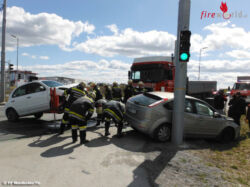 WAIDHOFEN/THAYA (NÖ): Eine verletzte Lenkerin und zwei stark beschädigte Fahrzeuge forderte ein Zusammenstoß zweier Fahrzeuge im ampelgeregelten Kreuzungsbereich auf der Bundesstraße 36. Um 13:25 Uhr wurde die Freiw. Feuerwehr Waidhofen/Thaya am 3. April 2015 zur Fahrzeugbergung und Freimachen der Verkehrswege alarmiert.