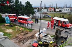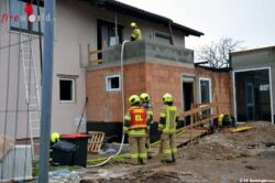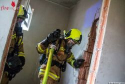Das ersteintreffende Fahrzeug stellte beim Eintreffen eine Verrauchung des gesamten Wohnhauses fest und lokalisierte einen Brand hinter einem Fußbodenheizungsverteiler im Erdgeschoss. Sofort wurde damit begonnen eine Löschleitung unter Atemschutz vorzunehmen und gleichzeitig wurde eine Druckbelüftung gestartet, um das Gebäude weitestgehend rauchfrei zu halten.