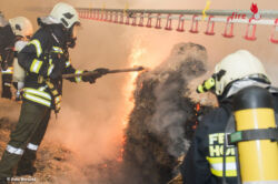 Durch die starke Rauchentwicklung war es für die Feuerwehr anfangs sehr schwierig, den Brand in der großen Halle zu lokalisieren. Mehrere Atemschutztrupps waren nötig, um den Brand zu löschen. Für das Befüllen der Atemschutzflaschen wurde das Atemschutzfahrzeug (ASF) der Feuerwehr Betriebsfeuerwehr Nettingsdorfer Papierfabrik AG Co Kg nachalarmiert. Hühner kamen bei dem Brand nicht zu Schaden, da der Stall zur Zeit noch leer stand. Schadenshöhe und Brandursache werden von der Polizei noch erhoben.