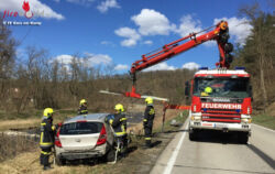 Eine Pkw-Lenkerin war von der Straße abgekommen und in den Uferbereich des Kampes gestürzt. Das Auto wurde von der örtlich zuständigen Feuerwehr mittels Seilwinde auf die Straße gezogen und anschließend mittels Hebekreuz und Kran des Wechselladefahrzeuges geborgen und gesichert abgestellt. Verletzt wurde niemand.