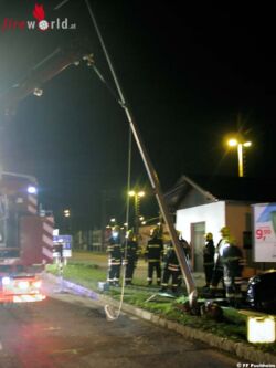 Aus bisher unbekannter Ursache streifte eine Autolenkerin einen Lichtmast. Die Lenkerin erlitt Verletzungen unbestimmten Grades und wurde vom Roten Kreuz versorgt und abtransportiert. Das beschädigte Fahrzeug musste von den Florianis mit Transportroller von der Bundesstraße beseitigt werden.