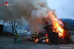 NIKLASDORF (STMK): Entgegen ihrer eigentlichen Aufgabe, nämlich dem Löschen von Bränden, betätigten sich die Kameraden der FF Niklasdorf mit Kommandant ABI Gerald Zechner am Samstag, dem 4. April 2015, als Anzünder des Osterfeuers.