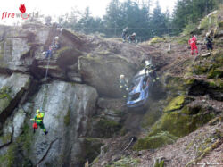 Während weitere Einsatzfahrzeuge zum schwer zugänglichen Übungsort gelotst wurden, machte sich HBI Ernst Größbauer in der Funktion des Einsatzleiters ein Bild des Geschehens. Sofort war ihm klar, dass ein solches Szenario viel Vorarbeit und Sorgfalt erforderte und nur mehrere MR-AS Gruppen die eingeklemmte sowie die abgestürzten Personen retten können. Deshalb wurden auch die Feuerwehren Frauental, Stainz, Pirkhof und Wald mit ihren MR-AS Gruppen über die Florianstation nachalarmiert.