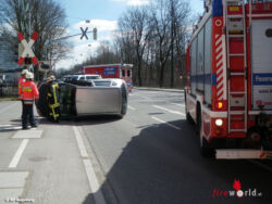 Bei diesem Verkehrsunfall landete ein Auto auf der Fahrerseite. Der Lenker konnte sich selbst befreien bzw. wurde befreit und kam verletzt ins Krankenhaus. Die Berufsfeuerwehr Augsburg stellte das Fahrzeug mit „Seiltechnik“ wieder auf und nahm Sicherungsarbeiten am Auto durch. Es kam für ca. 45 min. zu Verkehrsbeeinträchtigungen auf der Friedberger Straße.