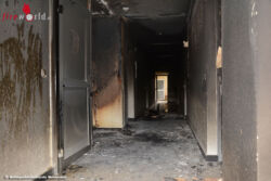 Die Alarmstufe wurde mehrfach erhöht, so dass die gesamte Freiwillige Feuerwehr Monheim zum Einsatz kam. „Einige Bewohner haben nach Erkennen des Brandes in Panik die Wohnungstüren nicht wieder verschlossen, so dass sich der Brandrauch über die Flure schnell in den Wohnungen ausbreiten konnte. Die Rettung über die Drehleitern war somit unumgänglich. Bewährt haben sich in dem Zusammenhang die durch den Vorbeugenden Brandschutz und Bauaufsicht nachgeforderten Stellflächen für die Drehleiter, die somit zur Bildung des zweiten Rettungsweges optimal eingesetzt werden konnte“, so Brandamtsrat Torsten Schlender. Im weiteren Einsatzverlauf wurden alle betroffenen Wohnungen auf Personen, Brand- und Rauchausbreitung nochmals kontrolliert und hierfür teilweise gewaltsam geöffnet. Der Einsatz der Feuerwehr war gegen fünf Uhr beendet.