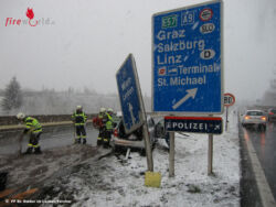 ST. MICHAEL (STMK): Am 6. April 2015 eignete sich auf der S36 beim Knoten St. Michael ein Verkehrsunfall. Ein älterer Herr kam mit seinem Pkw von der scheebedeckten Fahrbahn ab und kollidierte mit einem Hinweisschild.