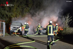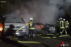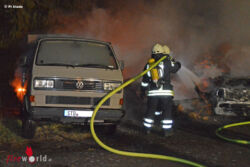 Durch das schnelle Eingreifen der Feuerwehr konnte ein Übergreifen auf daneben liegende Gebäude verhindert werden. Der Carport wurde durch den Brand völlig zerstört und auch ein VW-Polo und ein VW-Transporter wurden bei dem Feuer total beschädigt. Der Gesamtschaden wird auf ca. 20.000 Euro geschätzt, verletzt wurde bei dem Feuer niemand.