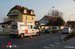 Ein Fahrzeug war auf einen links abbiegenden Pkw im Heckbereich geprallt. Durch den Aufprall verletzte sich ein Kleinkind unbestimmten Grades und wurde nach der Erstversorgung durch das Rote Kreuz ins LK Wr.Neustadt gebracht. Die weiteren Beteiligten erlitten einen Schock. An den Fahrzeugen entstand erheblicher Sachschaden, nach Unfallaufnahme durch die Polizei Sollenau wurde ein Pkw mittels Abschleppachse von der Unfallstelle durch die Feuerwehr Feixdorf verbracht. Abschließend wurden die Verkehrsflächen von ausgetretenen Betriebsmitteln gereinigt. Während den Einsatztätigkeiten musste der Verkehr einseitig am Unfallort vorbeigeleitet werden. Nach knapp 45 Minuten konnte die Feuerwehr Felixdorf wieder einrücken.