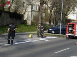 GAINFARN (NÖ): Am 11. April 2015 wurde der Kommandant der Feuerwehr Gainfarn Michael Wallner um 16.00 Uhr telefonisch von einer Ölverschmutzung in der Hauptstraße informiert.