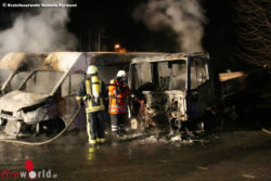 HAMELN (DEUTSCHLAND): Auf dem Gelände einer Fahrzeugbaufirma sind in der Nacht auf den 12.04.2015 drei abgestellte Fahrzeuge in Flammen aufgegangen. Kurz nach 02.00 Uhr erkannte eine Autofahrerin im Vorbeifahren den Flammenschein vom Außengelände der Firma und verständigte die Feuerwehr.