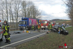 BAD GANDERSHEIM (DEUTSCHLAND): Tödliche Verletzungen erlitt eine 22 jährige Autofahrerin aus Hameln am Montagmorgen, 13. April 2015, gegen 07.45 Uhr auf der Bundesstraße 64 bei Bad Gandersheim. Nach ersten Ermittlungen der Polizei war die junge Frau mit ihrem PKW Citroen auf der Fahrt, aus Richtung Seesen kommend, in Richtung Bad Gandersheim.