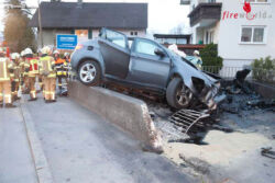 Vbg: Spektakulärer Unfall in Hohenems: BMW prallt gegen Betongartenmauer