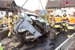 Er wurde mit der Rettung ins LKH Hohenems eingeliefert. Die Feuerwehr band ausgelaufenes Öl und säuberte die Unfallstelle. Der BMW wurde vorne total zerrissen, ein Stück der betonierten Gartenmauer wurde durch den Aufprall abgerissen.