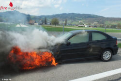 Der 19-jährige Fahrer und sein gleichaltriger Beifahrer waren von Rheineck in Richtung Altstätten unterwegs, als es aus dem Motorenraum des Autos zu Qualmen begann. Die beiden hielten sofort auf dem Pannenstreifen an und verständigten die Einsatzkräfte. Die Feuerwehr St. Margrethen konnte den Brand löschen. Das Auto erlitt einen Totalschaden. Ein technischer Grund steht als Brandursache im Vordergrund.