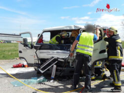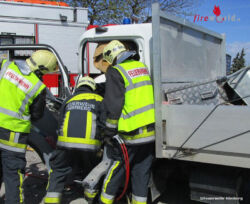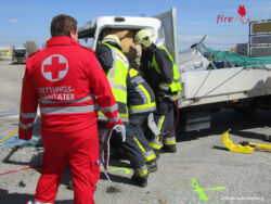 Einer der beiden Lenker wurde in der Fahrzeugkabine im Beinbereich eingeklemmt. Die ersteintreffenden Einsatzkräfte der Feuerwehr Himberg wurden an der Unfallstelle durch den anwesenden Ersthelfer HBI Michael Sax, welcher Feuerwehrkommandanten der Feuerwehr Oberwaltersdorf ist, kurz in die Lage unterwiesen. Nach der Erkundung des Einsatzleiters wurde sofort mit der Erstversorgung und Betreuung der Verletzten begonnen. Für den besseren Zugang zur Fahrertür des Patienten, wurde der andere Lkw, welcher bedingt fahrtüchtig war, entfernt. Im Anschluss konnte die Fahrertür mittels hydraulischem Rettungsgerät geöffnet werden und der Vorbau des Klein-Lkw mittels Rettungszylinder vom Patienten weggedrückt werden.