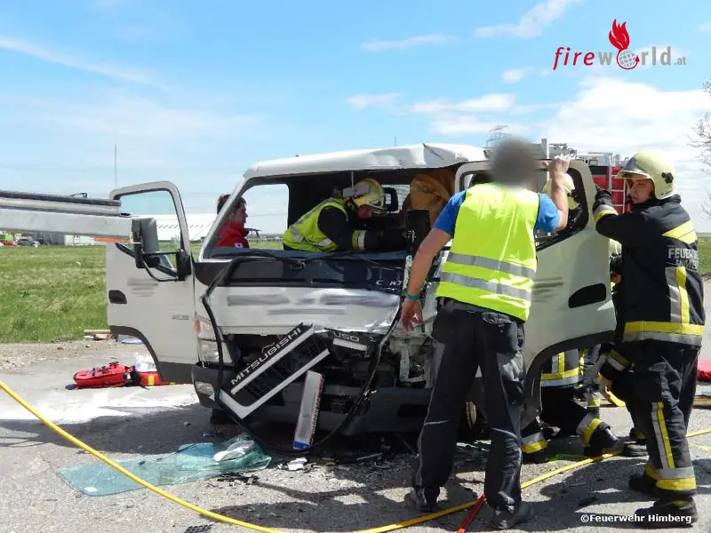 Einer der beiden Lenker wurde in der Fahrzeugkabine im Beinbereich eingeklemmt. Die ersteintreffenden Einsatzkräfte der Feuerwehr Himberg wurden an der Unfallstelle durch den anwesenden Ersthelfer HBI Michael Sax, welcher Feuerwehrkommandanten der Feuerwehr Oberwaltersdorf ist, kurz in die Lage unterwiesen. Nach der Erkundung des Einsatzleiters wurde sofort mit der Erstversorgung und Betreuung der Verletzten begonnen. Für den besseren Zugang zur Fahrertür des Patienten, wurde der andere Lkw, welcher bedingt fahrtüchtig war, entfernt. Im Anschluss konnte die Fahrertür mittels hydraulischem Rettungsgerät geöffnet werden und der Vorbau des Klein-Lkw mittels Rettungszylinder vom Patienten weggedrückt werden.