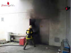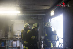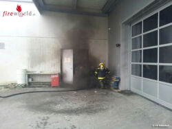 Der auslösende Melder wurde nach der Nachschau bei der Brandmeldeanlage in einem Lagerraum ermittelt. Bei der Lageerkundung drang bereits beißender Rauch aus der Tür auf der Rückseite des Gebäudes. "Da es sich bei dem Lagerraum um ein Lösungsmittellager handelte wurde der Einsatz unter schwerem Atemschutz und unter äußerster Vorsicht durchgeführt. Mit Hilfe der Wärmebildkamera wurde der Brandherd rasch gefunden", so der Einsatzleiter HBI Pesendorfer Ernst. Da die beiden Tanklöschfahrzeuge der FF Ohlsdorf und FF Aurachkirchen durch den Böschungsbrand gerade Wasser tanken wollten, aber zum nächsten Einsatz alarmiert wurden, wurde auch die Betriebsfeuerwehr mit dem ULF-A4000 nachalarmiert.