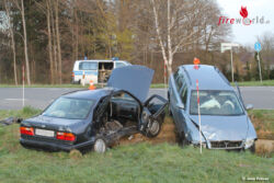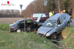 Bei dem Aufprall des Skodas in die Beifahrerseite des Nissans wurde dieser stark beschädigt, beide Fahrzeuge schleuderten herum und kamen im Graben zum Stehen. Bei Ankunft der Feuerwehr war niemand mehr eingeklemmt, die Beifahrerin im Nissan wurde allerdings tödlich verletzt. Ihr Ehemann verletzte sich schwer und wurde mit dem Rettungshubschrauber Christoph 6 aus Bremen ins Krankenhaus gebracht.