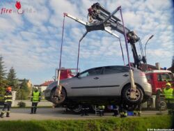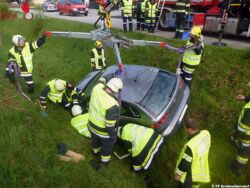 Ein abgestellter Pkw hatte sich vermutlich schon in der Nacht selbständig gemacht und war in einem Bach gerollt. Der Fahrzeugbesitzer wurde erst durch die Polizei darauf aufmerksam. Mittels Kran des Wechselladefahrzeuges wurde der Pkw wieder auf die Fahrbahngestellt. Am verunfallten Seat war durch den Unfall ein Schaden im Frontbereich entstanden.