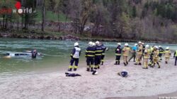 BAD ISCHL (OÖ): „Verkehrsunfall eingeklemmte Person, Pkw in Traun versunken“ so lautete am 19. April 2015 um 19.37 Uhr die Einsatzmeldung für die Kameraden der Hauptfeuerwache Bad Ischl und der Freiwilligen Feuerwehren Pfandl und Mitterweißenbach.