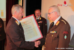 Der Tagesordnungspunkt stand ganz im Zeichen der Beförderung und Auszeichnung des altersbedingt scheidenden Liezener Abschnittskommandanten ABI Walter Rieger, welcher zum Ehren-Abschnittsbrandinspektor ernannt wurde. Zu seinem Nachfolger wurde ja kürzlich der Kommandant der Stadtfeuerwehr Liezen, ABI Reinhold Binder gewählt.