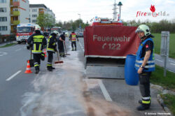 LAXENBURG (NÖ): Zum bereits zweiten Einsatz nach einer Brandmeldeauslösung bei einer Spedition im Industriezentrum Nö-Süd, rückte die Freiwillige Feuerwehr Laxenburg am 20. April 2015 um 17.09 Uhr zur Beseitigung einer Ölspur nach Verkehrsunfall aus.