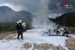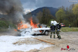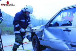 Oö: Freiw. Feuerwehr Leonstein beübt Unfall mit Menschenrettung und Autobrand