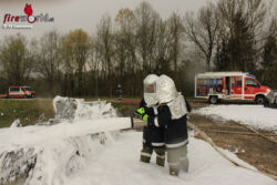 In der zweiten Station wurde ein Pkw in Brand gesetzt. Dieser musste mit Hilfe eines Löschschaums bekämpft und abgelöscht werden. Um die Wasserversorgung sicherzustellen, wurde ein kleiner Bach aufgestaut und das Wasser über die Tragkraftspritze zum Einsatzort befördert.