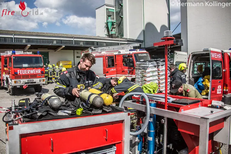 Oö: Mehrere Feuerwehren beüben Gefahrguteinsatz im Lagerhaus Alkoven (+Video)