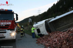 Stmk: 12-stündiger Feuerwehreinsatz nach Unfall mit Schlachtabfall-Transporter auf der A9