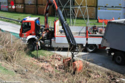 Aus noch unbekannter Ursache durchbrach ein mit Schlachtabfällen beladener Lkw die Seitenleitplanke der Autobahn und kam seitlich auf Höhe eines Containerlagerplatzes des örtlichen Terminals zum Erliegen. Bei diesem Unfall verlor der Transporter sein Ladegut annähernd zur Gänze.