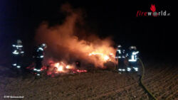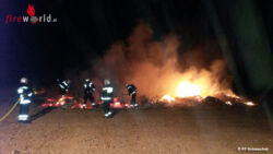 Die Freiwillige Feuerwehr Schwechat rückte gegen 22:20 Uhr mit einem Kommandofzg, einem Tanklöschfahrzeug, dem Wechselladertank und einem Lastfahrzeug zum besagten Einsatzort aus. Lage beim Eintreffen: Aus unbekannter Ursache brannten auf einer Fläche von ca. 60m² verschiedenste Erntegüter.