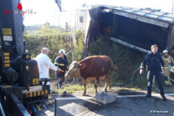 Von "Florian Bad Ischl" wurden Landwirte aus Bad Ischl bzw. der Umgebung zum Einsatzort zur Unterstützung gerufen. Einige Tiere irrten am Einsatzort herum bzw. rannten drei Tiere in Richtung Ebensee. Die Ersthelfer bzw. in weiterer Folge die Einsatzkräfte der Freiwilligen Feuerwehren nutzen eine sich neben dem Unfallort befindliche Wiese dazu, um die geretteten Tiere dort zu halten. Diese wurde mittels Arbeitsleinen abgesperrt.