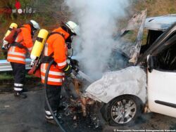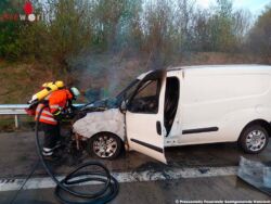 Aus ungeklärter Ursache geriet der mit zwei Personen besetzte Wagen im Motorraum in Brand. Der Fahrer steuerte das Fahrzeug nach Bemerken der starken Rauchentwicklung auf den Seitenstreifen wo dieses dann im vorderen Bereich vollends in Flammen aufging.