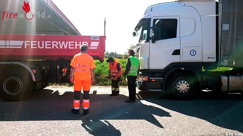TULLN (NÖ): Am 24. April 2015 forderte die Autobahnpolizei Stockerau die Feuerwehr Tulln um 14.34 Uhr zur Entfernung eines liegen gebliebenen Sattelzuges auf der Richtungsfahrbahn Wien der Stockerauer Schnellstraße an.