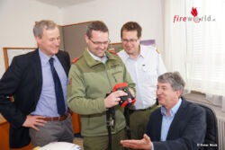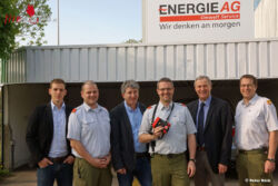 Brandrat Ing. Peter Schrottenholzer und das Kommandanten-Team des Löschzuges 5 Münichholz folgten am 22.04.2015 der Einladung der Energie AG Umwelt Service GmbH und trafen sich mit Vertriebsleiter Dipl. Ing. Dr. Franz Richter, Betriebsleiter des Standortes Steyr Dipl. Ing. Meho Music und Brandschutzbeauftragten für den Standort Steyr Gernot Raffetseder am Betriebsgelände der Energie AG, um die Kamera offiziell in Empfang zu nehmen. Das Unternehmen sieht in der Unterstützung der Feuerwehren in ihrem Geschäftsbereich einen wichtigen Beitrag zur aktiven Schadensverhütung.