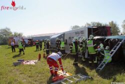 Der Flugzeugrumpf und die Wrackteile wurden mit einem Autobus und drei deformierte Pkws dargestellt. Brandtassen wurden für die Brandstellen verwendet.