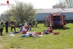 SCHWADORF (NÖ): Ein Flugzeugabsturz in Schwadorf war die Annahme bei der diesjährigen Unterabschnittsübung der Feuerwehren Schwadorf, Rauchenwarth, Kleinneusiedl, Fischamend, Wienerherberg und Enzersdorf (Bezirk Bruck) am 25. April 2015.