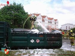 Der Container wurde händisch geöffnet und mit den Löscharbeiten begonnen. Auch der Bezirkssachbearbeiter für Schadstoff, Marcus Schwarz, wurde in der Zwischenzeit durch den Leitstellendisponenten angefordert. Die Löscharbeiten unter anfangs Mittel-, und anschließend Schwerschaum zeigten rasch Wirkung und der Container konnte binnen kürzester Zeit abgelöscht werden.