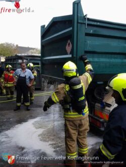 Diesmal war ein Containerbrand in einem Gewerbebetrieb der Grund für den Einsatz der Kottingbrunner Feuerwehr. Das ersteintreffende Einsatzleitfahrzeug erkundete beim Eintreffen einen Brand eines Abfallcontainer, welcher gefährliche Stoffe beinhaltete. Sofort wurde dem eintreffenden ersten Tanklöschfahrzeug die Vornahme eines Schaumrohres zur Brandbekämpfung unter Atemschutz angeordnet.