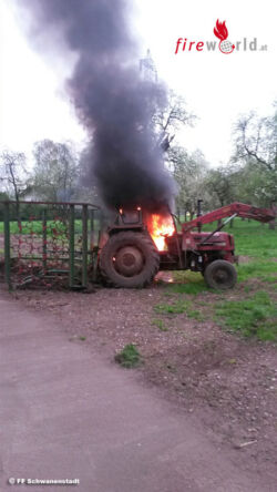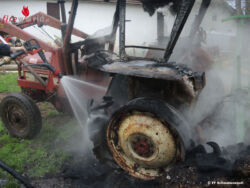 Beim Eintreffen der Feuerwehr am Brandherd stand ein Traktor bereits in Vollbrand. Glücklicherweise war der Traktor im Freien und nirgends eingestellt. Durch diesen Umstand war der Brand binnen kürzester Zeit unter Kontrolle und gelöscht.