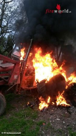 OBERNDORF (OÖ): Am 26. April 2015 um 06.40 Uhr musste die Feuerwehr Schwanenstadt zu einem Traktorbrand nach Oberndorf ausrücken.